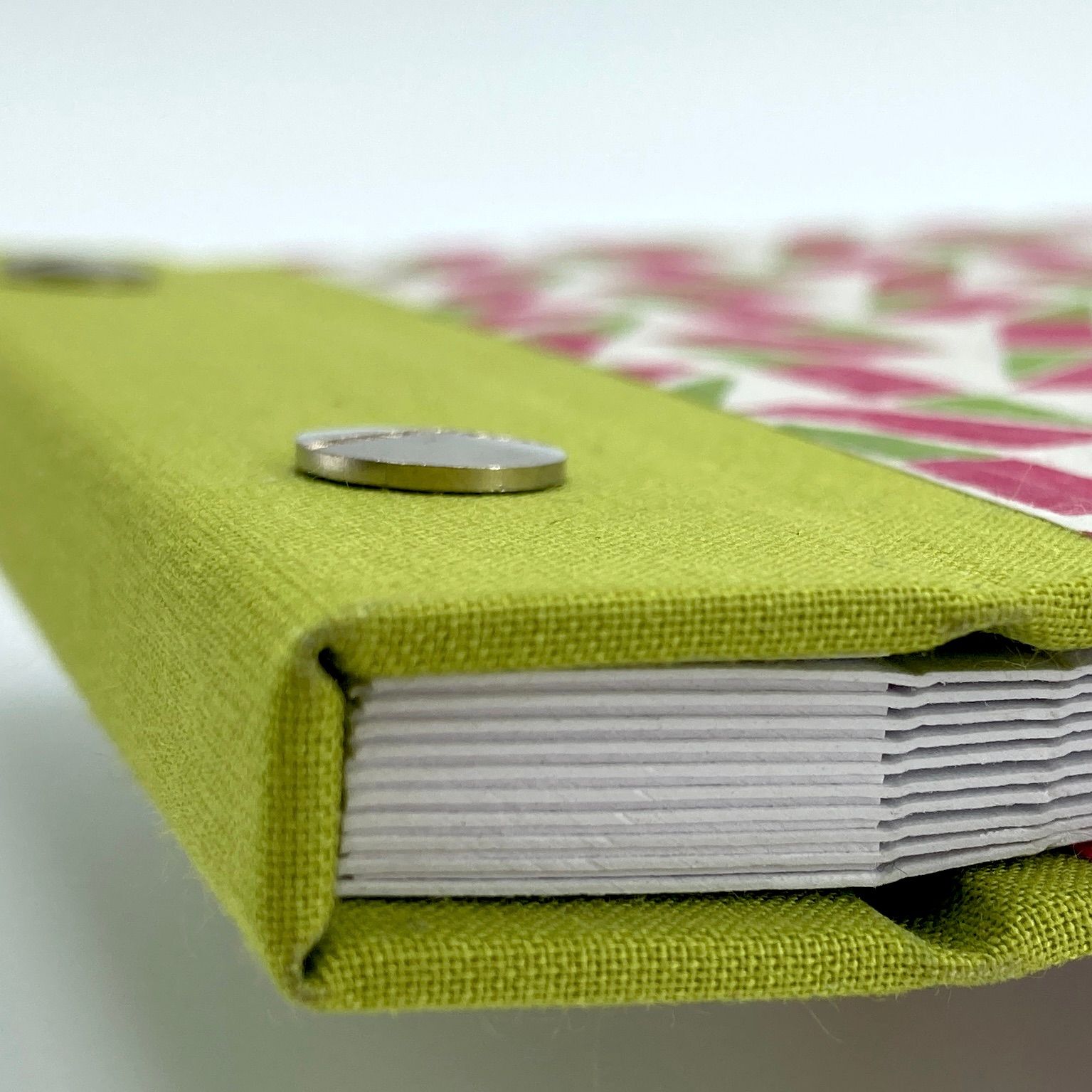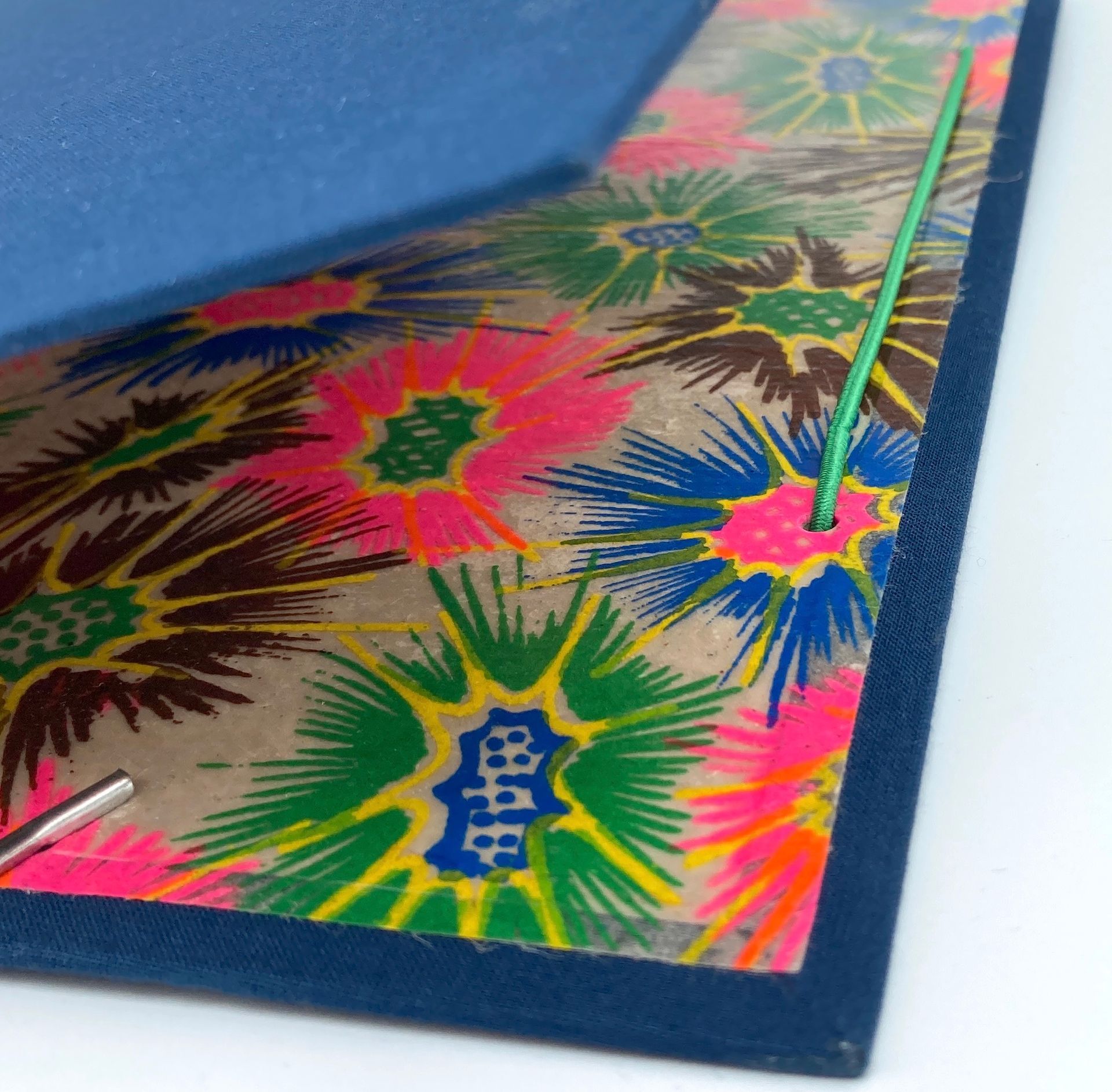 Farbiger Zwirn, eine dekorative Heftung, edles Bezugspapier und gute Laune - mehr braucht es nicht für dieses besondere Büchlein.